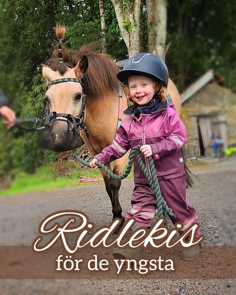 Ridlekis är ridkul för de yngsta, 3-8 år. Här lär vi oss om hästar och ridning på ett lekfullt och kravöst vis! Lektionerna är 75 minuter och innehåller både ridning och hästskötsel.