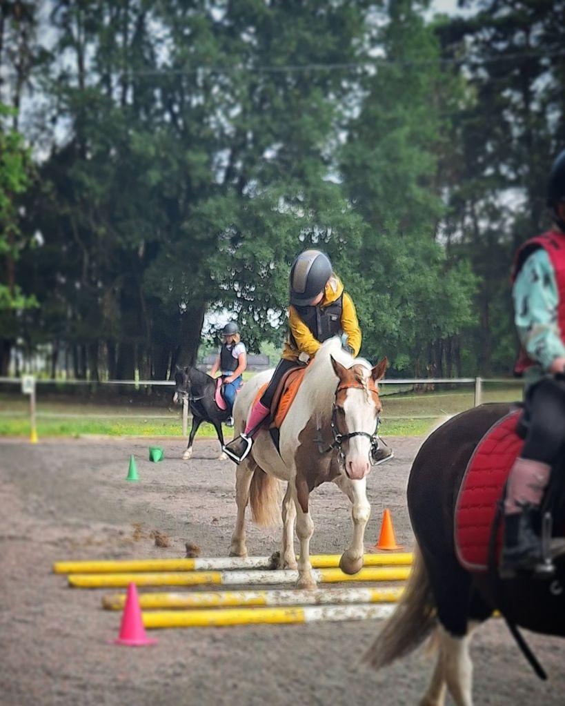 Upplägg? Vi undervisar barnen enligt Ridlektionsmodellen, och varvar roliga och lärorika övningar på ridbanan med härliga uteritter som lär barnen sits och balans samt att umgås med hästen på ett avslappnat sätt. Vi har en terminsplanering och en utvecklingsplan, men fokuserar inte på prestation utan på den enskilda individens utveckling, bygga en gruppkänsla och att ha roligt tillsammans med hästarna. Vårt mål på Haglunds Ponnycenter är att utbilda framtidens hästmänniskor, och därför är det viktigt för oss att variera underlag, övningar och miljö när vi rider.